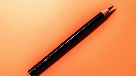 This photo features a single black colored pencil poised on a vibrant orange background, perfect for highlighting creative tools and artistic expression.