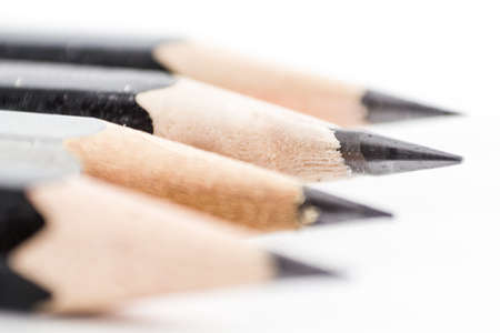 Symbolic illustration of office, scientific work and education simple pencils on an open notebook with loose-leafed sheets macro photography