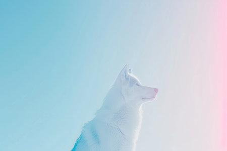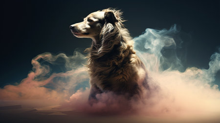 In a quiet moment, a loyal canine companion is captured in a stunning profile portrait. Ethereal vapor adds a touch of drama and mystery, highlighting the dogs noble and attentive expression against a simple gray background.