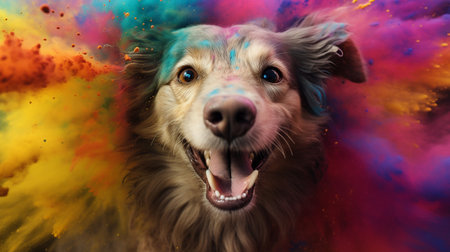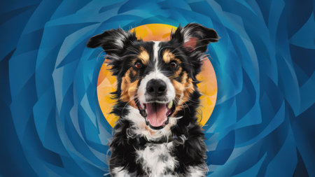A lively dog captured in vibrant colors and energetic background, expressing joy and excitement. Perfect for pet lovers and creative projects.