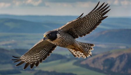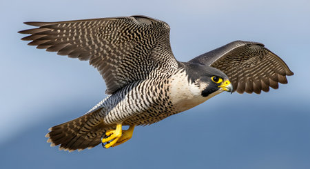 Dynamic image of a peregrine falcon in flight, showcasing its incredible speed and focus.