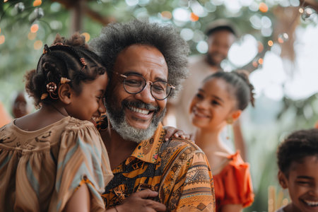 Hugging grandfather, granddaughter at family gathering, celebrating joyfully together. celebration, love, happiness, generations, togetherness, bonding