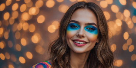 AI Generated. Happy Young Lady with Colorful Makeup Smiling