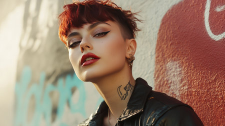 A dramatic shot of a woman with a bold, edgy haircut, confidently posing against an urban backdrop, showcasing the power of hairstyling as a form of self-expression.