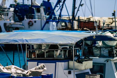 Limassol Cyprus May 30, 2020 Closeup of a fishing boat moored in the old port of Limassol in Cyprus island