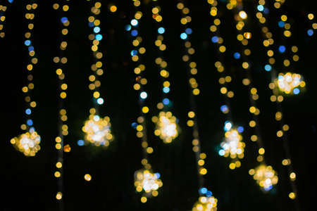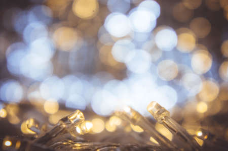 the nigt light bokeh festival with small LED light decor on party night christmas or new year background