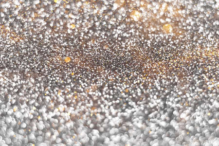 Silver and golden sparkling glitter bokeh background, christmas abstract defocused texture. Holiday lights