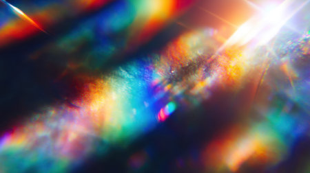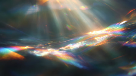 Soft ripples of glowing rainbow lens flare overlapping, creating a magical abstract light effect