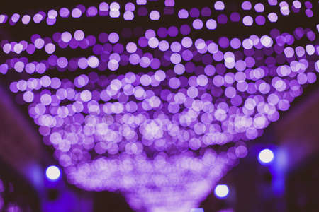 Festive blurred backdrop of decorated for Christmas. party lights.