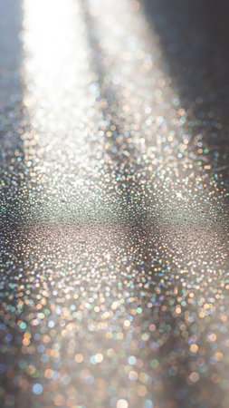 Shallow showing abstract bokeh background with sparkling glittering particles and soft light rays creating a dreamy and magical atmosphere with a shallow depth of...