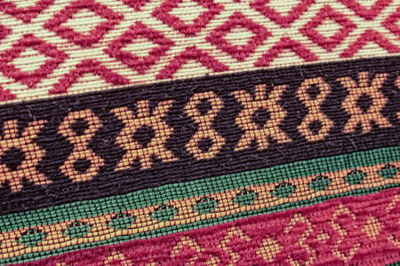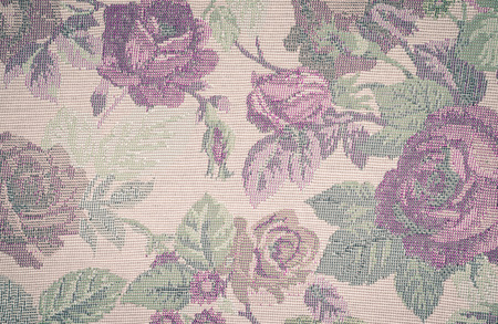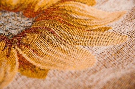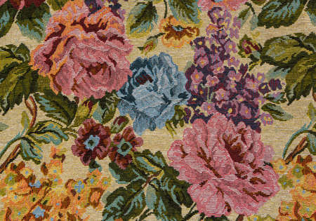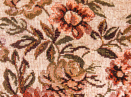 Fragment of colorful retro tapestry textile pattern with floral ornament useful as background. high quality photo
