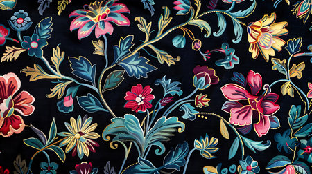 A stunning closeup of a floral fabric showcasing vibrant colors and intricate patterns. Ideal backdrop for showcasing textile art and home decor ideas.