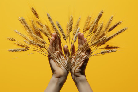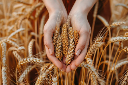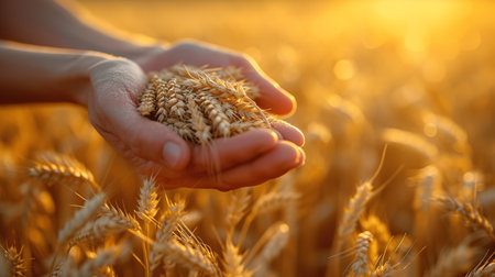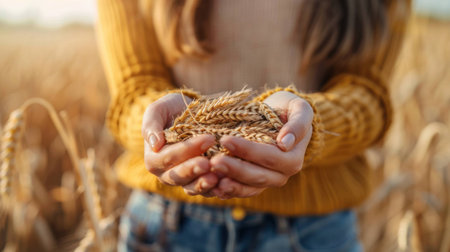 Hands cupping ripe wheat ears in a field, emphasizing the bounty and beauty of nature's produce