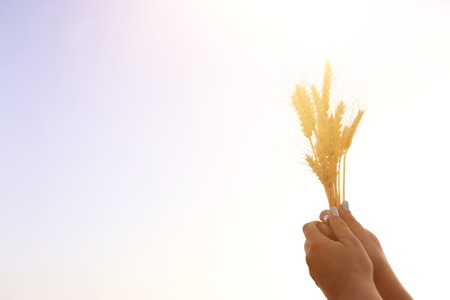 Agriculture Golden Hour - woman holding wheat ears in hands agriculture