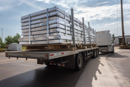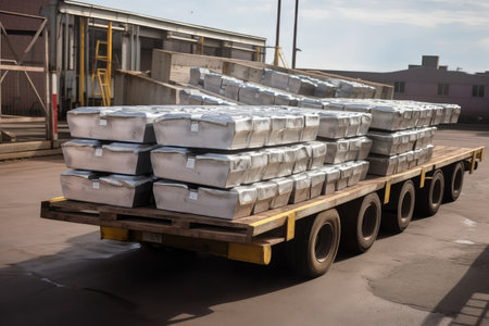 alumum ingot being transported by truck to manufacturing facility, created with generative ai