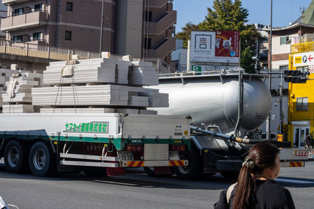 Tokyo, Japan, November 1, 2023: Industrial Cargo Transport on Tokyo Street