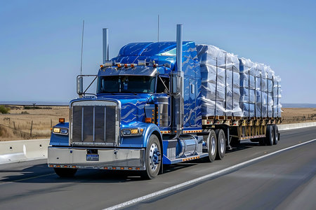 An image of semi truck on the road. TRANSPORT SAFETY. Generative AI.