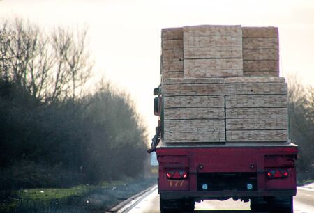 Carrier vessel in the highway road in Poland. Lorry transport delivering some freight cargo.