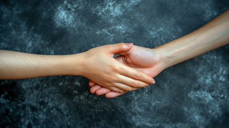 Close-up of two hands holding each other on a dark background