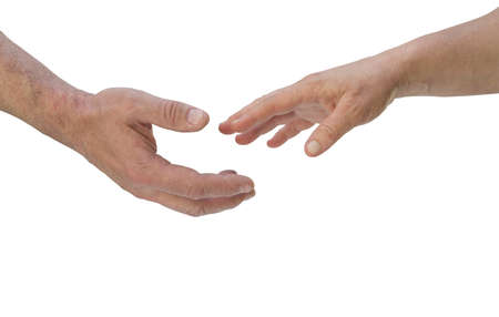 Two male hands reaching towards each other Isolated