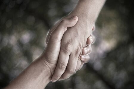 Tho hands holding, help, assist, support and trust concept