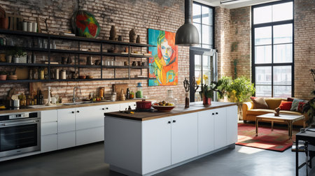 Eclectic Loft Kitchen: Exposed Architectural Beauty and Creative Mix