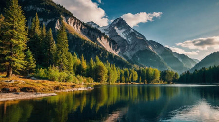 Scenic Mountain Lake Landscape with Forest and Rocks