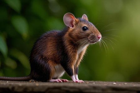 A charming small mouse sits gracefully among lush greenery and delicate flowers, embodying the beauty of wildlife in its natural habitat. Perfectly captured in a serene moment, this image showcases the intricate details and vibrant colors of nature.
