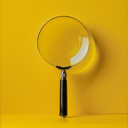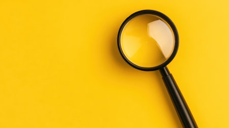 A black and silver magnifying glass on the minimalist yellow background.