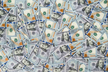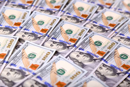 American cash dollars close-up. One Hundred Dollar Banknotes. Soft focus image.
