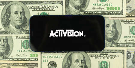 Kharkov, Ukraine - January 19, 2021: Activision closeup. Business, stock and trade, money and dollars background