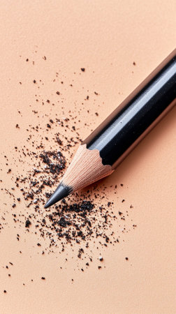 A captivating close-up shot of a sharpened pencil tip, revealing fine shavings and dust particles. This image captures intricate details and textures, perfect for creative projects.