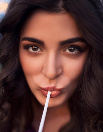 Close-up of a woman applying lip liner to enhance her lips. Beauty concept with focus on precision and definition.