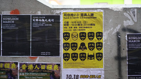 Hong Kong protest umbrella movement evidence in Mongkok area spray and poster all over public transportation