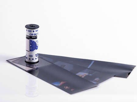 Negative 35 mm film. Rolls of photographic film. Film photo amateur, nostalgic family archive concept