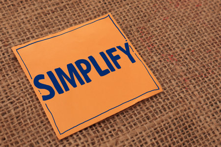 Simplify, text words typography written on color papers against sack textured, life and business motivational inspirational concept