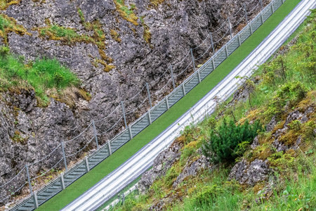 In-run of Great Krokiew ski jumping venue in Zakopane built on the north slope of Krokiew Mountain in the Tatras.