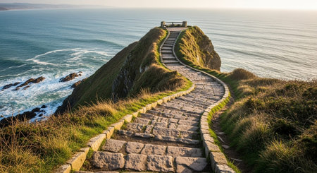 coastal path at golden hour, grasses glowing and ocean horizon ahead --chaos 30 --ar 16:9 --v 6.1 Job ID: 85a52e9f-6afe-4842-b3a2-f4a041f5e8bf