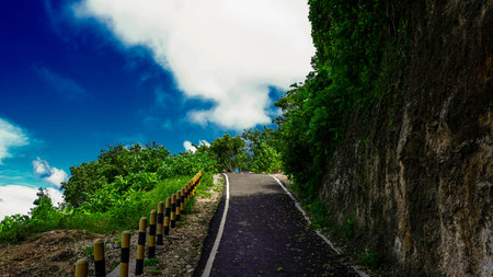Experience the thrilling descent on a steep staircase leading to breathtaking coastal views of Nusa Penida, Indonesia. Discover the dramatic cliffs and turquoise waters of this iconic island destination, perfect for adventure seekers.