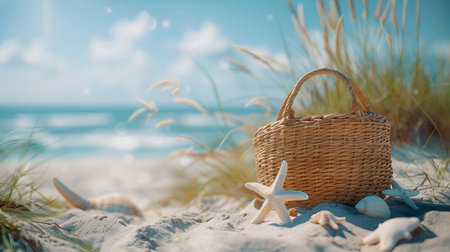 Seaside Serenity: Beach Essentials with Straw Bag and Starfish
