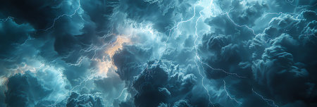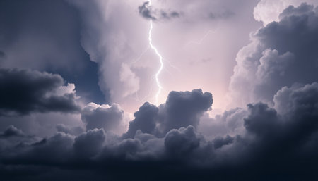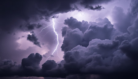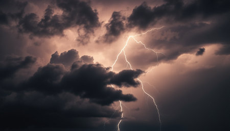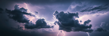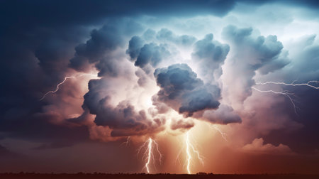 Intensity of a stormy sky, lightning strikes, rain clouds before thunder.