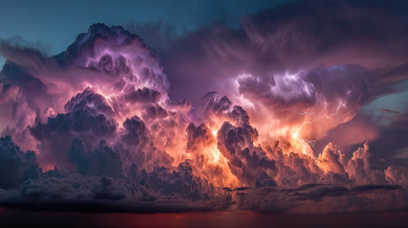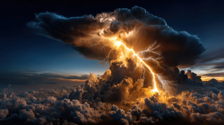 Dramatic beauty lightning storm illuminates dark sea clouds in a powerful display of nature s force