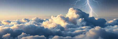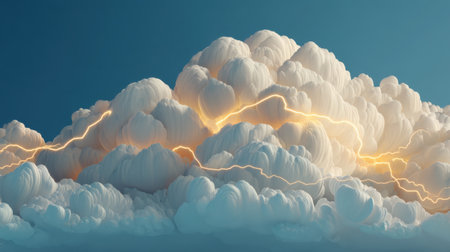 Dramatic stormy sky with lightning, 3d render illustration