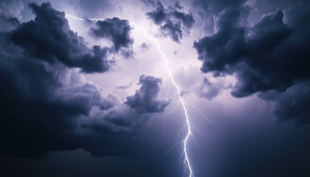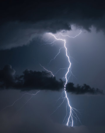 Dramatic flash of lightning illuminating a dark, stormy sky, capturing the power of nature