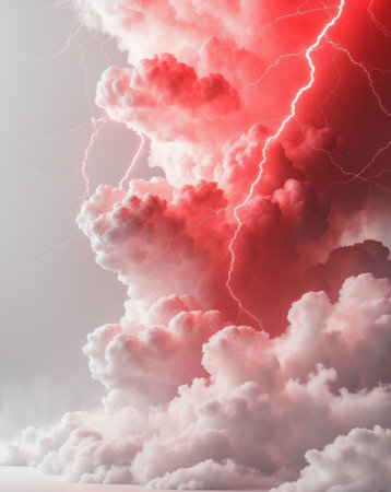 AI Generated. Dramatic abstract red lightning cloud banner with an electrifying atmosphere