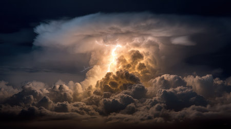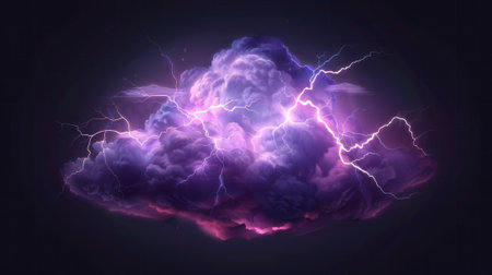 Captivating scene of a thunderstorm cloud illuminated by bolts of lightning, showcasing the magnificent interplay of light and shadow in a dramatic night sky.