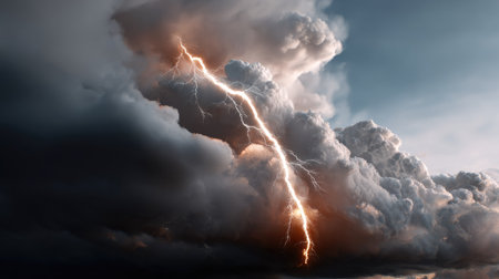 AI Generated. Power of nature a striking visualization of lightning amidst dark storm clouds