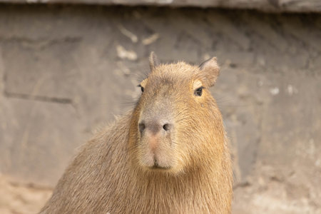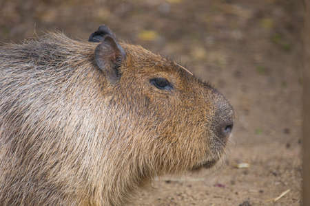 Close up photo of Capybara, Hydrochoerus hydrochaeris, the largest rodent