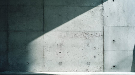 This image showcases a minimalist concrete wall illuminated by natural light, creating a striking play of shadows. Ideal for modern architectural concepts and interior design.