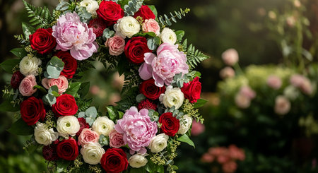 Luxurious Crimson Rose Wreath Adorned with Lush Foliage for Festive Elegant and Romantic Holiday for Christmas New Year or Winter Holidays